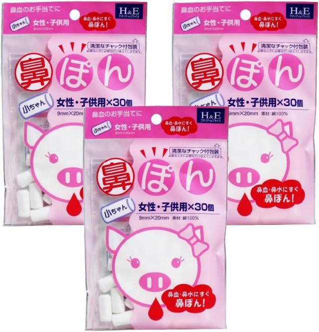【3袋セット】鼻ぽん 小ちゃん 女性・子供用 30個×3袋 鼻血 鼻水に チャック付包装