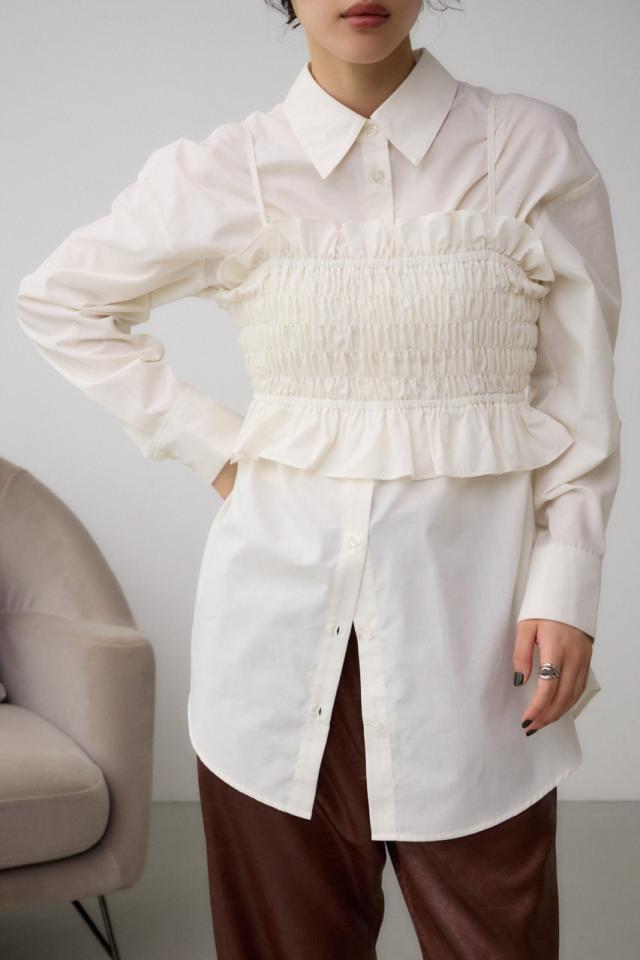 ベーシックなシャツと同素材のビスチェがセットになったアイテムです。