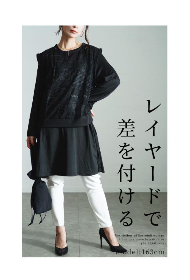 春新作 レイヤードで差が付くアンサンブルチュニックワンピース レディース ファッション アンサンブル セットアップ ブラック 大人可愛い 40代 レディースファッション 50代女性 ファッション 60代 ミセスファッション サワアラモード sawaalamode otona almam-366140