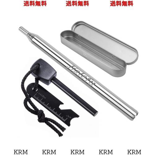 【商品セット内容】:火吹き棒×1、ファイヤースターター×1、ストライカー ×1、ホイッスル×1、防水、防火鉄ボックス×1 【梱包寸法】:約18*3.8*1.8cm 梱包重量:約113g 【特長1】:安全便利な火吹き棒、コンパクト・軽量なので、持ち運びラクラクです!口に当たる部分は丸く加工されているので安心です!5段、伸縮式のデザインで、長さも自由に調節でき。 【特長2】:マグネシウムを削って簡単に火を起こせるので、また栓抜きとしてしても使用できるので大変便利!また目盛りもついているので、定規としても使用できます。釣り、キャンプ、などのアウトドア活動や災害時などの防災用品として大変便利です。 【特長3】:山中で気温が下がり低体温になると大声も出せなくなります。ホイッスルにより遭難を防ぐ事ができた事例もありますので、危険防止の為に携帯する事をお薦めします。