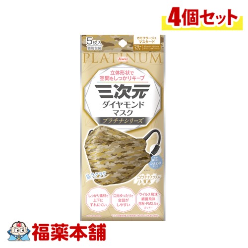 興和 三次元ダイヤモンドマスク プラチナシリーズ フリーサイズ カモフラージュマスタード 5枚入×4個 [ゆうパケット・送料無料]