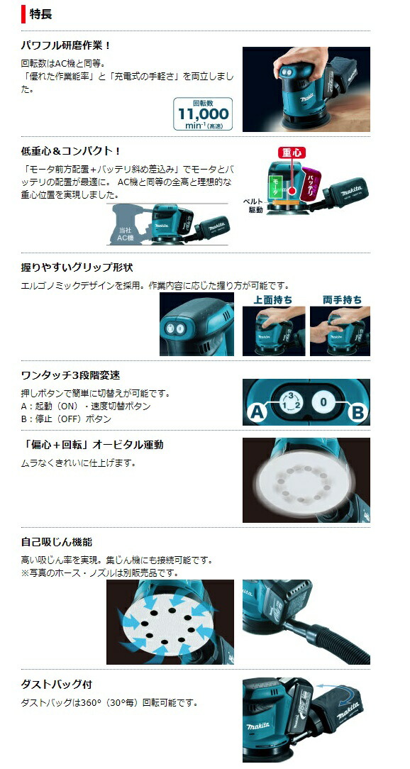 マキタ 125mm 充電式ランダムオービットサンダ BO180DZ+バッテリBL1860B+充電器DC18RF付 18V対応 makita 当店オリジナルセット品
