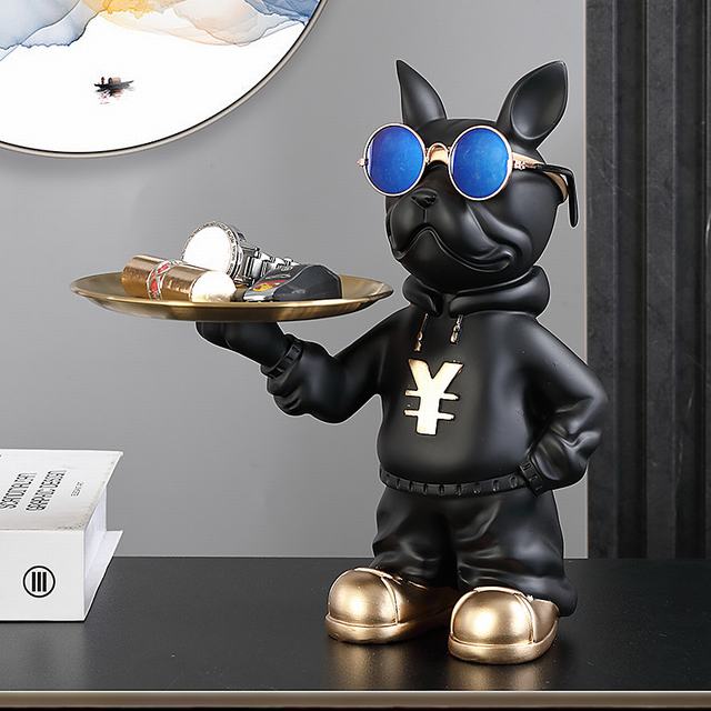 サイズ:掲載写真をご参照くださいませ。フレンチブルドッグ好きにはたまらない、かわいい小物入れが入荷しました。ブラックのフィギュアがトレイとしても使える機能的なアイテムで、玄関やリビングでお部屋をおしゃれに演出します。サングラスをかけたフレンチブルドッグが、キー、アクセサリー、コイン、お菓子、携帯電話、リモコンなど、さまざまな小物を収納するのにぴったりのサイズ感です。お部屋をオシャレに演出したい方におすすめのアイテムです!