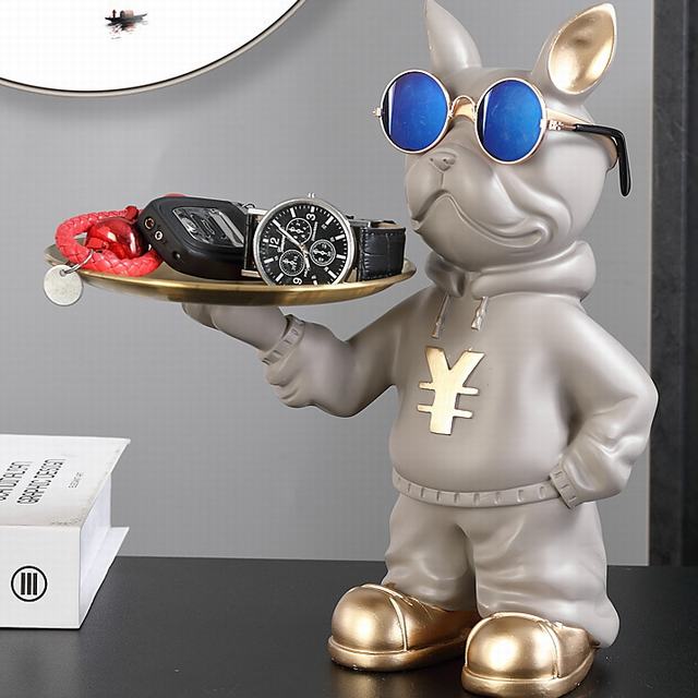 サイズ:掲載写真をご参照くださいませ。フレンチブルドッグ好きにはたまらない、かわいい小物入れが入荷しました。ブラックのフィギュアがトレイとしても使える機能的なアイテムで、玄関やリビングでお部屋をおしゃれに演出します。サングラスをかけたフレンチブルドッグが、キー、アクセサリー、コイン、お菓子、携帯電話、リモコンなど、さまざまな小物を収納するのにぴったりのサイズ感です。お部屋をオシャレに演出したい方におすすめのアイテムです!