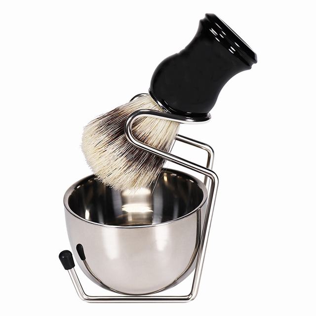 シェービングブラシセット アナグマ毛 メンズ 髭剃り 泡立ち 洗顔ブラシ ブラシ+スタンド+石鹸ボウル 3点セット