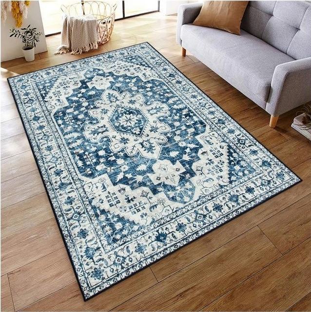 【商品仕様】サイズ:120x160cm厚さ:約4〜6mm表面素材:100%ポリエステル裏面素材:TPE(すべり止め加工)。オーバーロック加工の端、遊び毛が出たり、形を崩れたりしにくい。梱包:折り畳み。※梱包により生じた折り目は時間の経過とともに平らになります。 上に重いものを置くと、カーペットのしわが早く消えます。【ペルシャ風のデザイン】左右対称に描かれたメダリオン・コーナーとアラベスクは、ペルシャの伝統的なデザイン。中央のフラワーモチーフがボーダーで縁取られ、芸術作品のような美しさです。さらっと滑らかな肌触り、ほどよいな厚さで、1年中使えます。装飾だけでなく耐久性もあります。【特徴】滑り止めテクスチャ付きのTPE製の裏面は通常の不織布の裏面より滑り止め効果が強いです。年配の方、お子様やペットがいらっしゃるご家庭でも安心してご使用いただけいます。吸水・防音・防ダニ・抗菌・防臭仕様、薄くて軽く、女性でも余裕で折りたたみや持ち運びができます。