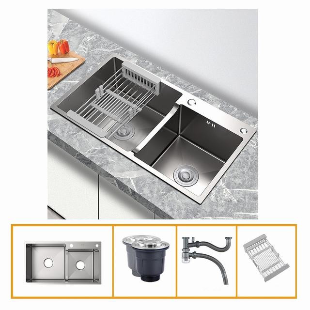 キッチン用品 ステンレス製流し台 台所 2槽シンク 食器洗いシンク 野菜シンク 便利 75*41*22CM