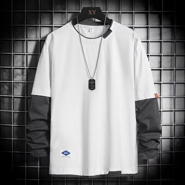 長袖 Tシャツ クールネック カジュアル トップス おしゃれ シンプル スポーツ 春秋 お洒落 メンズファッション ホワイト