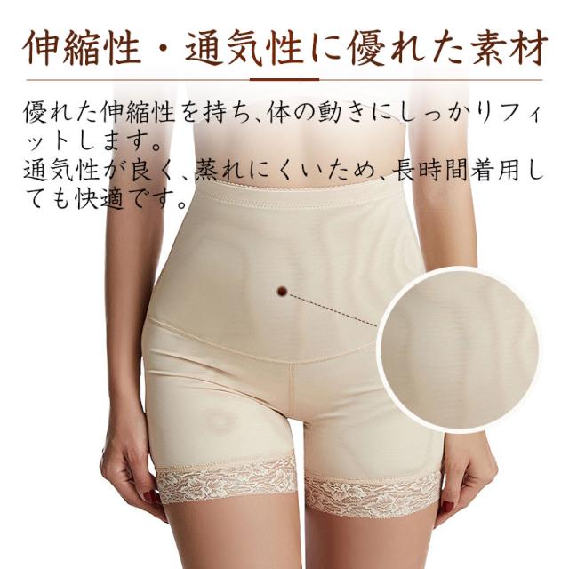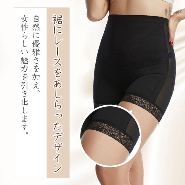 ハイウエスト設計で、お腹周りをしっかり引き締め、スムーズなシルエットを実現します。