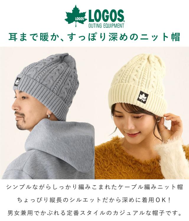 LOGOS ロゴス 耳まで暖かい ケーブル編み ニット帽 深め 帽子 柔らかい 良く伸びる ワッチ 秋冬 メンズ レディース 刺繍 ワンポイント 無地 knit-1719 正規取扱 アウトドア 防寒 お洒落 ビーニー 締めつけない 男女兼用 カジュアル プレゼント
