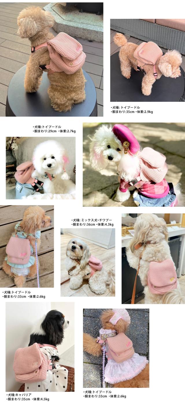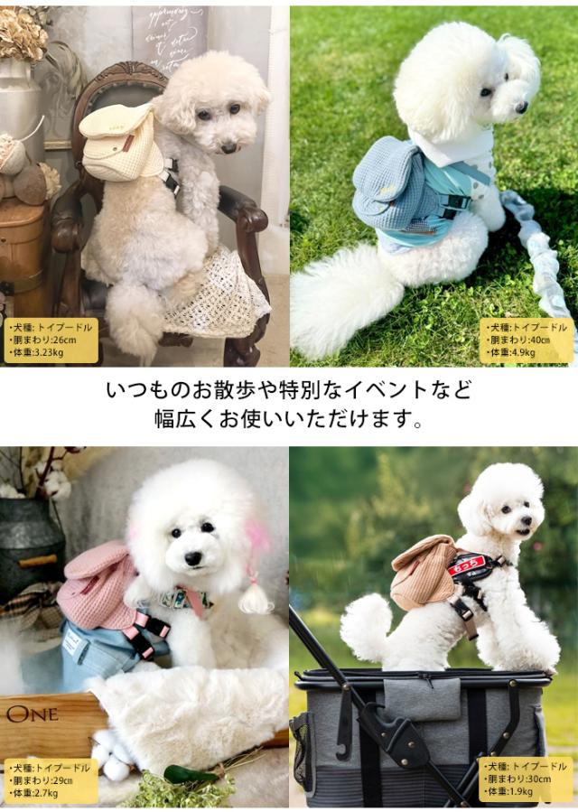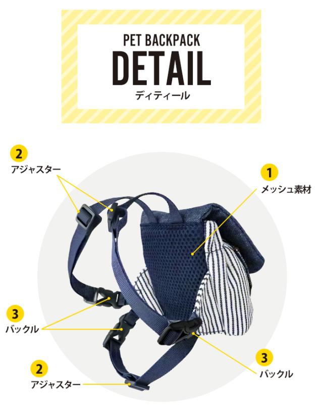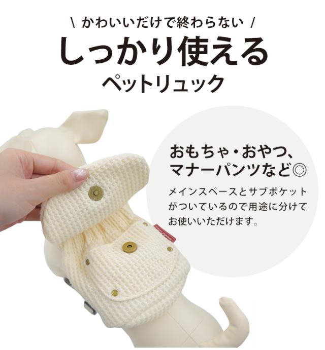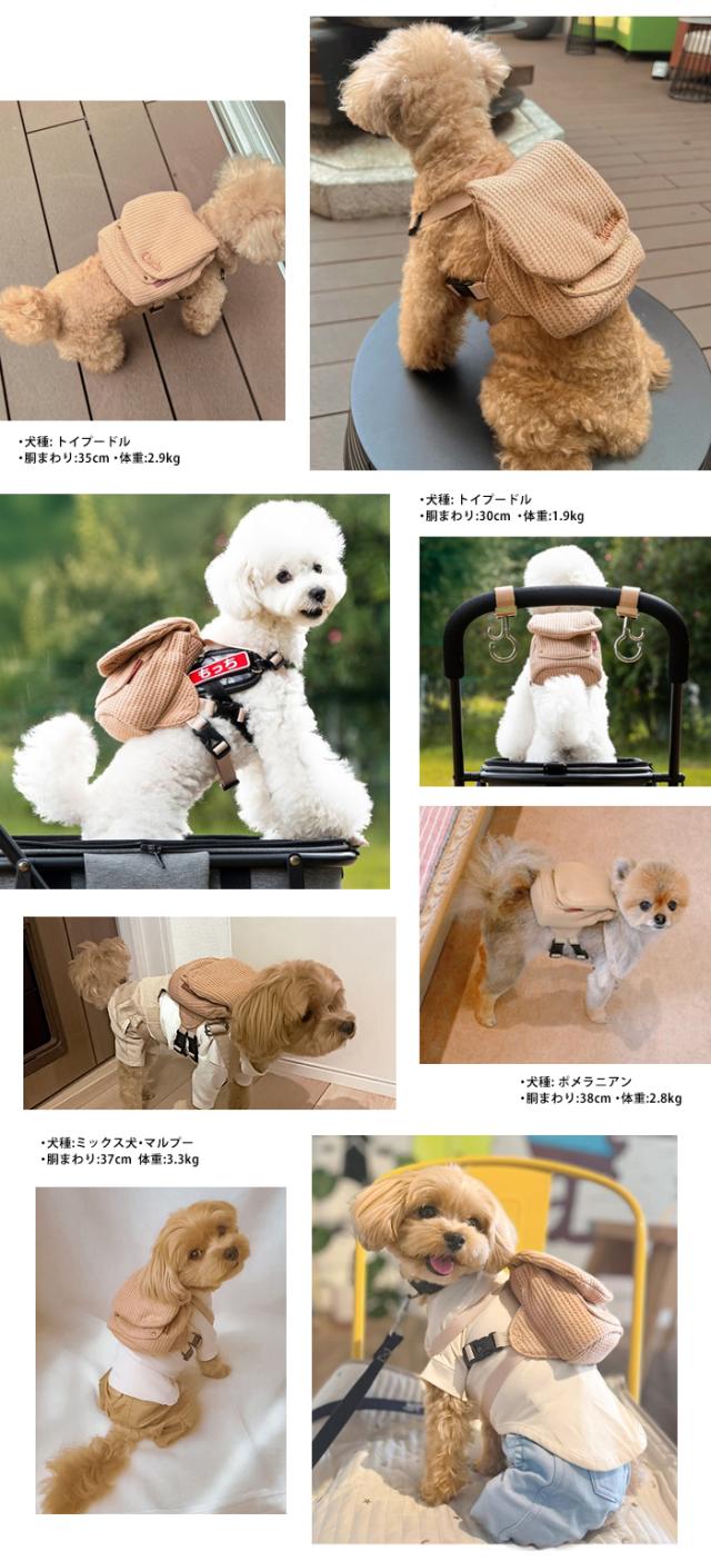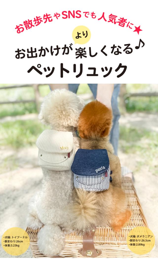 e.x.p.japon petブランドのワンちゃん用ペットリュック。お気に入りのおもちゃ、おやつ、マナー用品、迷子札など小さなアイテムを入れておでかけ。おしゃれで可愛いワンちゃんリュックです。