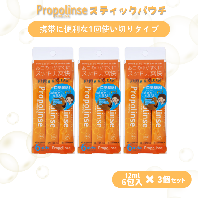 マウスウォッシュ プロポリンス 個包装 携帯用 パウチ 12ml×6包入り 3個セット
