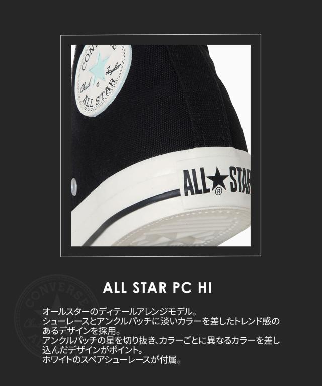 コンバース オールスター スニーカー ハイカット キャンバスシューズ 定番 王道 軽量 紐 メンズ レディース ユニセックス 男女兼用 ジュニア 替え紐付き 黒 ブラック 白 ホワイト ブラウン CONVERSE ALL STAR PC HI