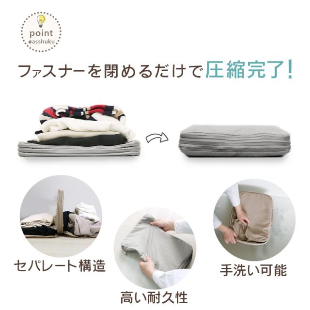 畳んだ衣類を収納して、ファスナーを閉めるだけで圧縮できます。