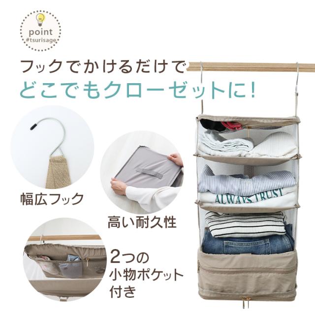 吊り下げタイプはクローゼット・太めのハンガーバーにも吊り下げられます。