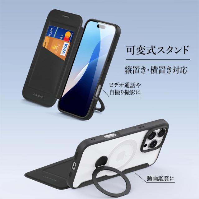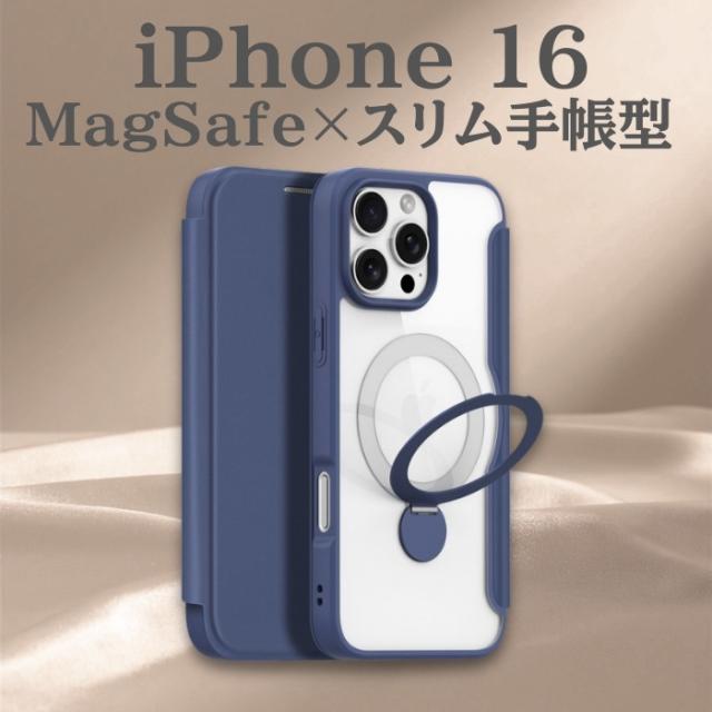 スマホケース iPhone16Pro iPhone 16 Pro ブルー 手帳型 TPU ストラップホール ワイヤレス充電 MagSafe スタンド付き カード収納 リング かっこいい シンプル