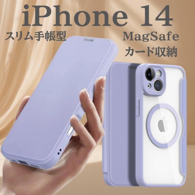 スマホケース iPhone14 iPhone13 iPhone パープル 手帳型 TPU ストラップホール ワイヤレス充電 MagSafe カード収納高級感 便利 多機能 かっこいい シンプル