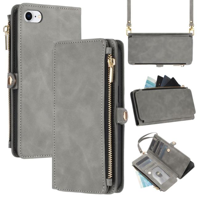 スマホケース iPhone7 iPhone8 iPhoneSE iPhoneSE2 iPhoneSE3 iPhone グレー 手帳型 TPU ストラップホール 財布 モノトーン 高級感 便利 多機能 かっこいい