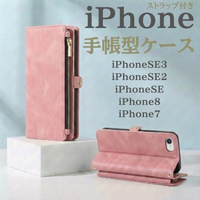 スマホケース iPhone7 iPhone8 iPhoneSE iPhoneSE2 iPhoneSE3 iPhone ピンク 手帳型 TPU ストラップホール 財布 高級感 便利 多機能 かわいい シンプル