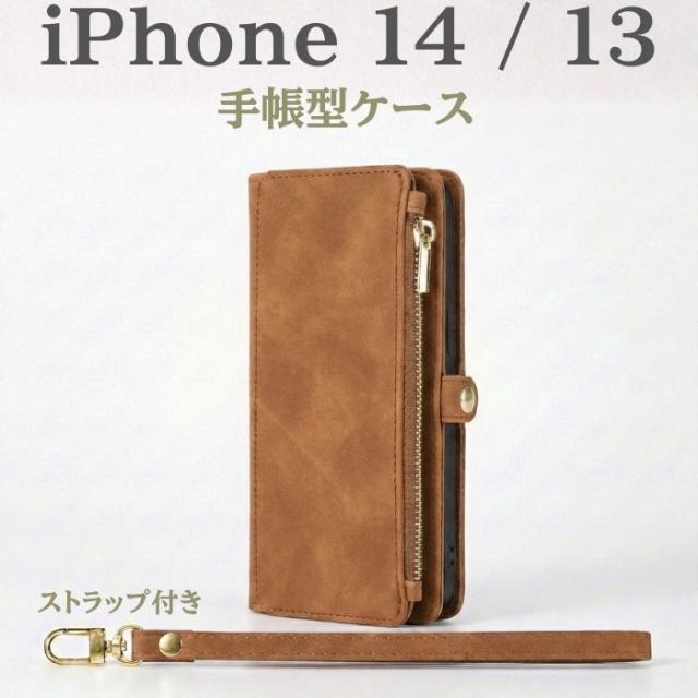 スマホケース iPhone14 iPhone13 iPhone 13 14 カーキ 手帳型 TPU ストラップホール 財布 高級感 便利 多機能 かっこいい シンプル スタイリッシュ クール