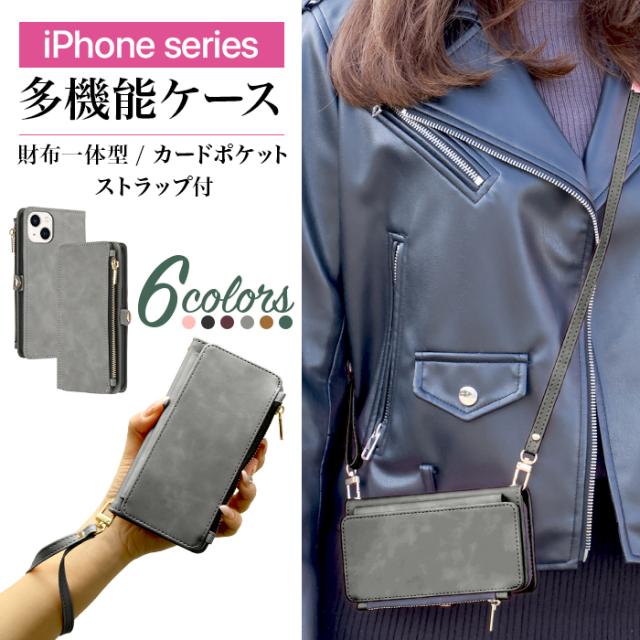 スマホケース iPhone14 iPhone13 iPhone 14 13 グレー 手帳型 TPU ストラップホール 財布 モノトーン 高級感 便利 多機能 かっこいい シンプル スタイリッシュ