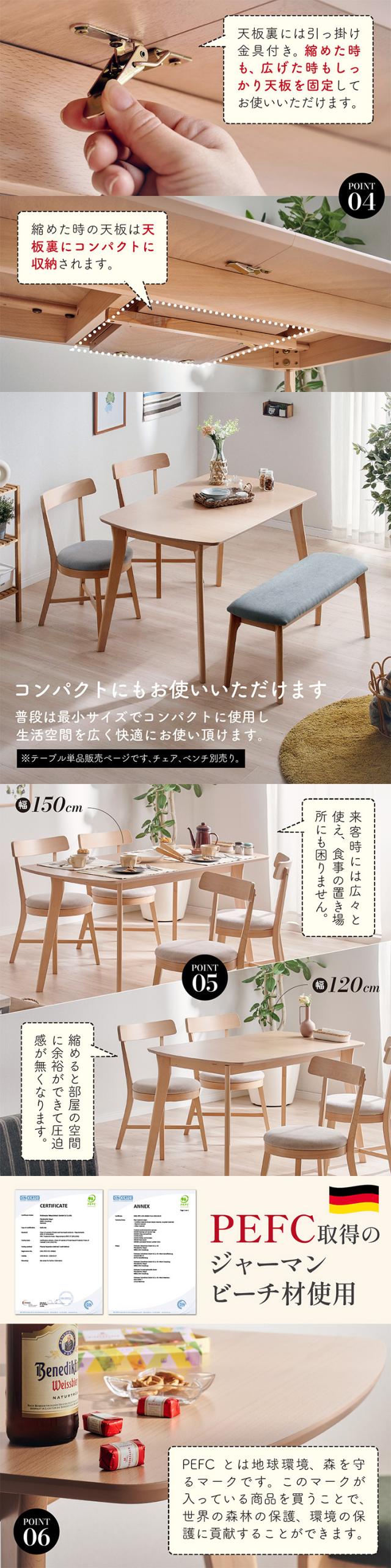ダイニングテーブル 長方形 幅150cm 単品 伸長式 ダイニングテーブル Aldeno(アルデーノ) ダイニング テーブル 4人掛け 食卓テーブル 伸縮式テーブル テーブル 作業台 カフェテーブル ナチュラル 木製 省スペース おしゃれ