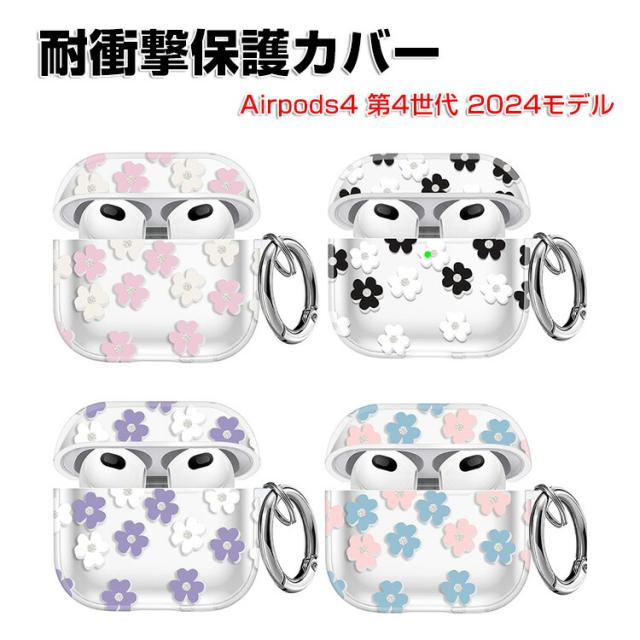 Apple airpods4 第4世代 2024モデル ケース 耐衝撃 カバー TPU素材のカバー 花柄 高透明 ケース イヤホン・ヘッドホン エアーポッズ CASE 落下防止 収納 保護 便利 創意 実用 人気 おしゃれ ソフトケース カバーを装着したまま 充電タイプ可能です カラビナ付き