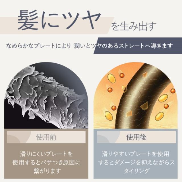 ・セラミック加工のプレートで、髪の水分を適度に保ち、枝毛や切れ毛を軽減。