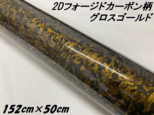 2Dフォージドカーボン調シート 152cm×50cm グロスゴールド 艶あり金 カーラッピングシート 鍛造 クラッシュマーブルカーボン柄 保護フィルム付