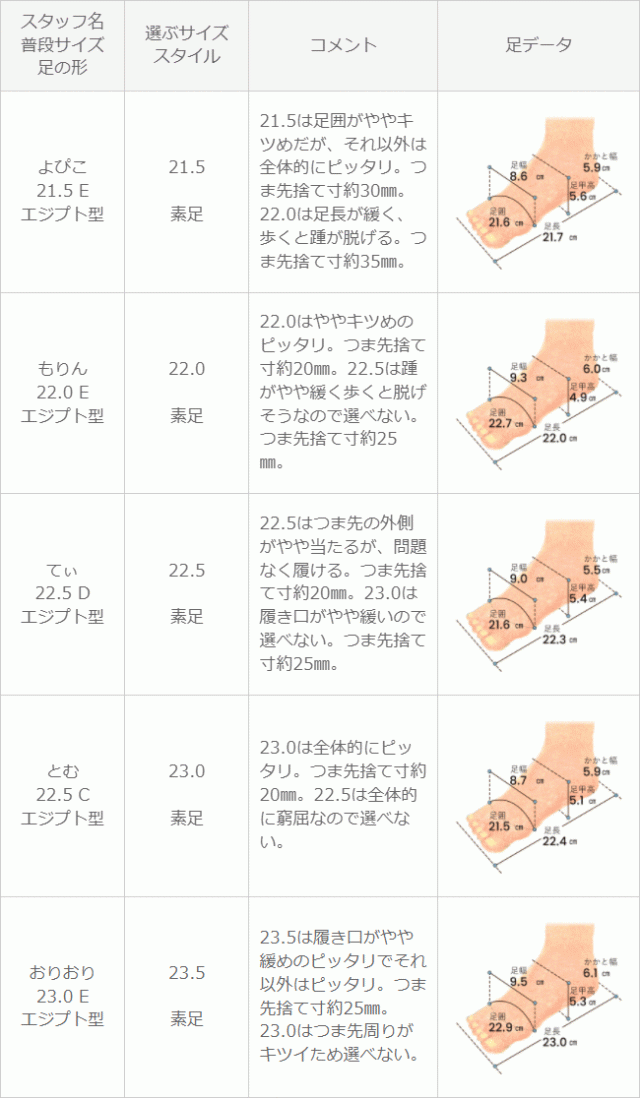 ※足の形には個人差があります。スタッフ試着感想は参考程度にお考え下さい。