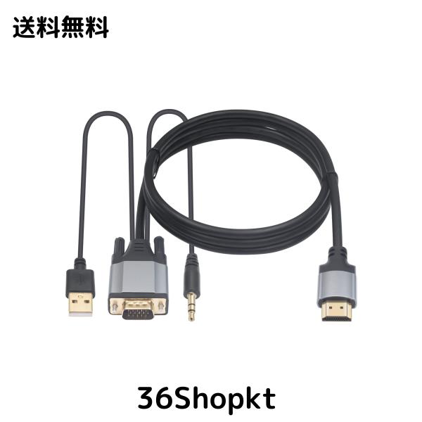 モニター用VGA to HDMI 変換 ケーブルには、外部アダプター不要、ドライバー不要、プラグアンドプレイのアクティブVGA - HDMIコンバーターチップセットが内蔵されています。HDMI-VGAアダプターケーブルチップは、同時にUSBポートに接続して使用するのに十分な電力を得る必要があります。オス3.5mm Aux Mini Jack経由でステレオオーディオを送信します。