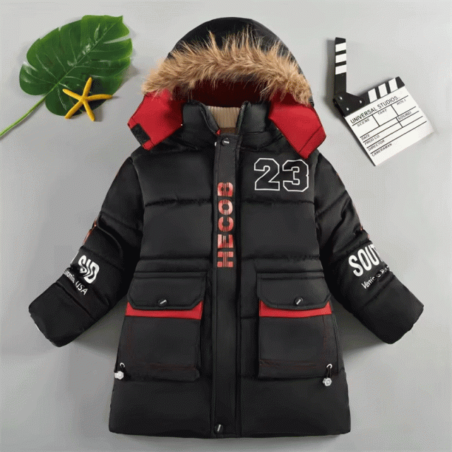 男の子 キッズ ベビー 子ども ロングダウンジャケット フード付き オープンポケット 120-150cm ブラック グレー ネイヴィー グリーン 4色 暖かい カッコいい