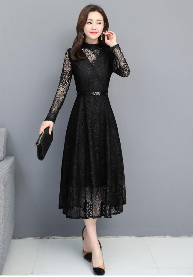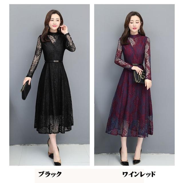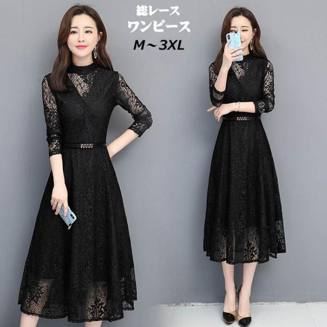総レース ワンピース 結婚式 ドレス 二次会 結婚式ワンピース 長袖ワンピ-ス パーティードレス 大きいサイズ ロングドレス 総レースドレス 二次会結婚式ドレス 着痩せ お呼ばれ レディース ドレス 黒 da140z7z7cy