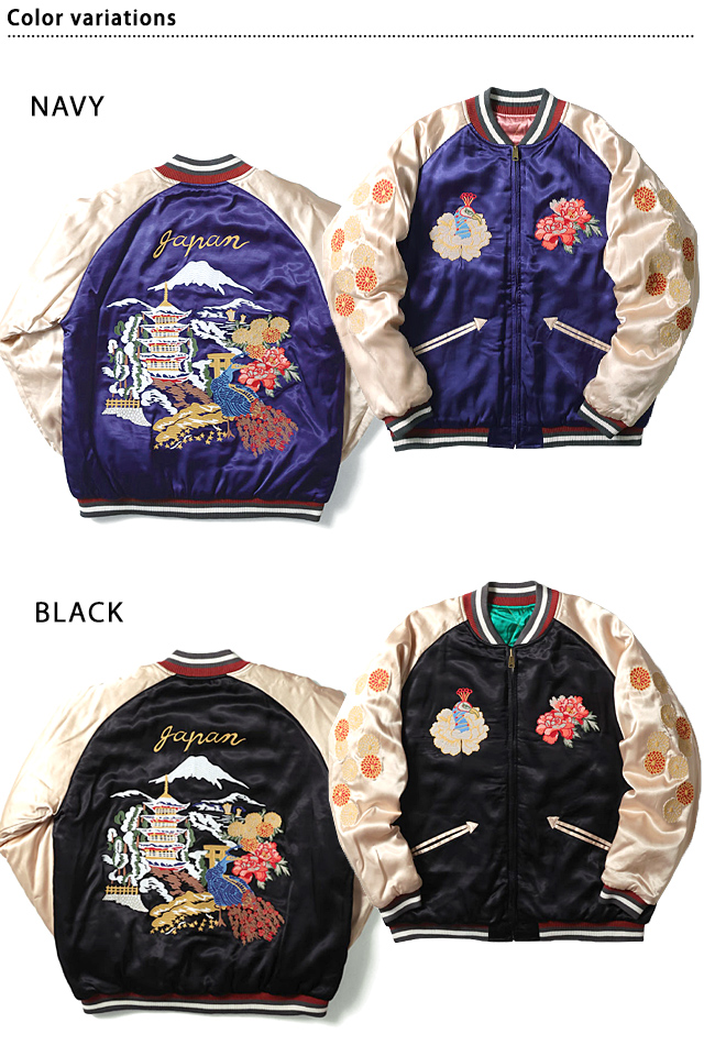 リバーシブルスーベニアジャケット「JAPAN」 HOUSTON 51391 ヒューストン 和柄 スカジャン 刺繍