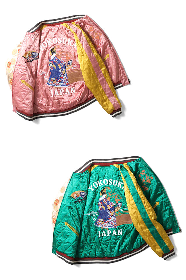 日本で初めてオリジナルのフライトジャケットを生み出し、その後も数々の国内製ミリタリー商品を製造する「ヒューストン」から、リバーシブルスーベニアジャケット「JAPAN」(51391)のご紹介です。 リバーシブル仕様のスカジャンです。 表面には城柄、裏面には舞妓柄を採用した和柄モチーフ。 裏面はダイヤモンドキルティングを施した豪華な仕様。 HOUSTONならではのフル装備されたスカジャンをぜひ堪能ください。 | ||||||||||||||||||||
