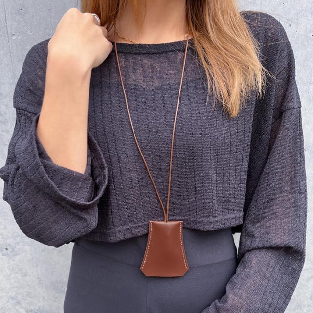 長めのストラップは首掛けだけでなくバッグのチャームとしても使用でき、