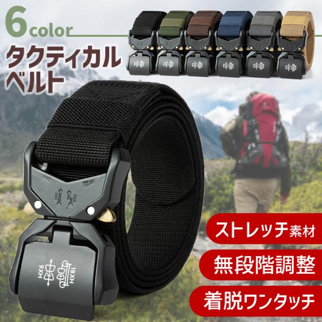 新作 無段階調整&ストレッチ素材! ワンタッチ バックル ナイロン タクティカルベルト 選べる6カラー ベルト ナイロンベルト ワンタッチベルト 作業ベルト メンズ 穴なし 無段階 伸びる 太 40mm おしゃれ 黒