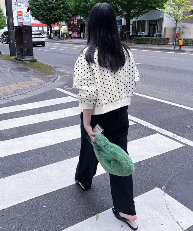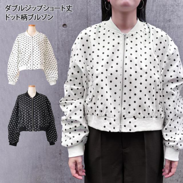 新作 ダブルジップショート丈ドット柄ブルゾン レディース アウター 秋 春 薄手 薄い ノーカラー ジャンパー ジャンバー 暖かい あったか 防寒 裏地付き ポケット 短め 羽織り おしゃれ カジュアル 通学 通勤