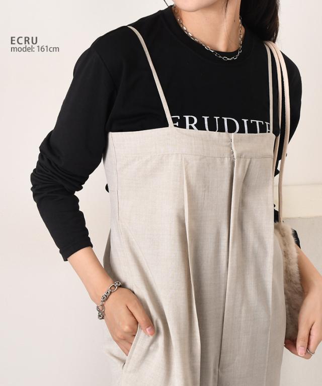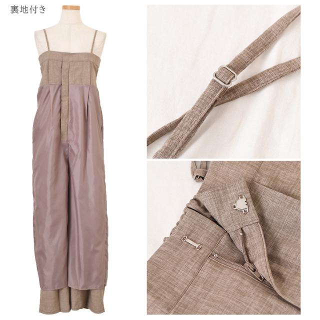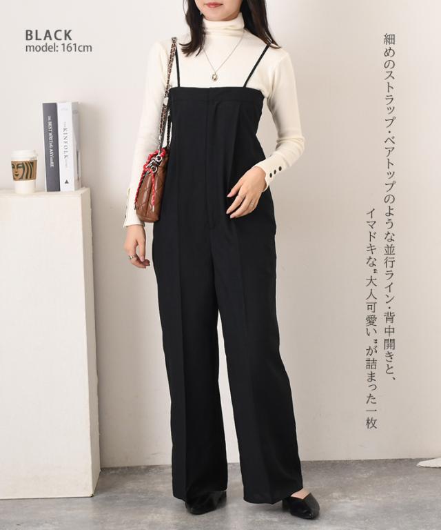 新作 バックオープンセンタープレスワイドサロペット レディース 秋 薄手 オールインワン オーバーオール ロング丈 マキシ丈 ワイドパンツ お出かけ カジュアル きれいめ 体型カバー 重ね着 レイヤード 高身長
