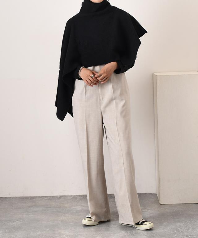 センタープレス加工されたフルレングスのワイドパンツで美脚効果◎