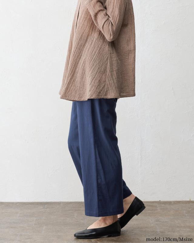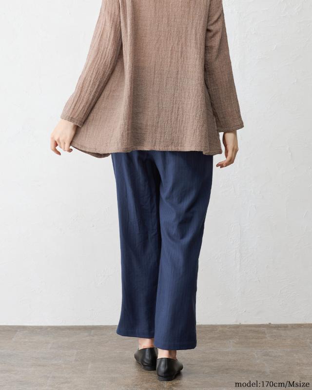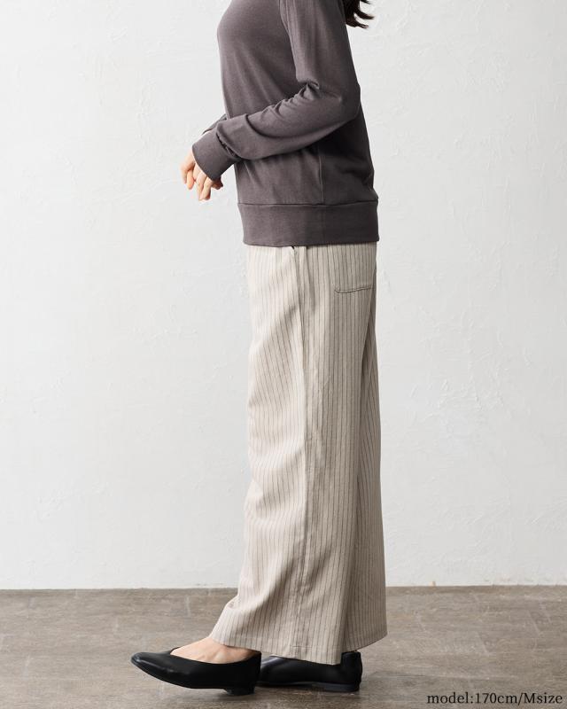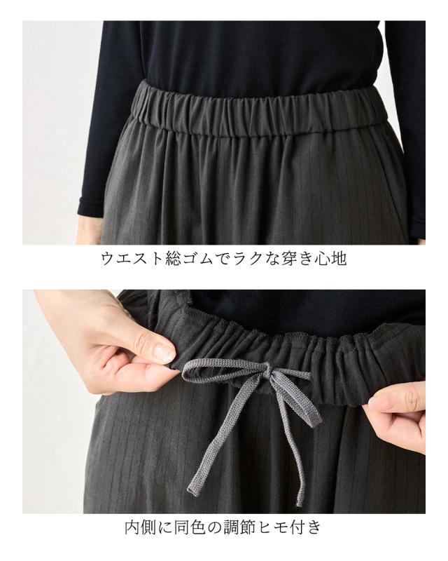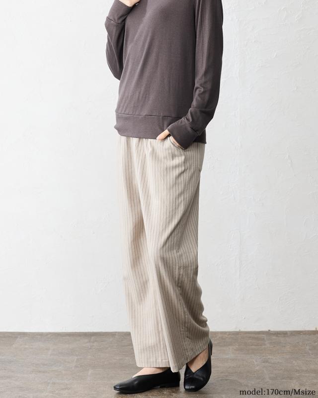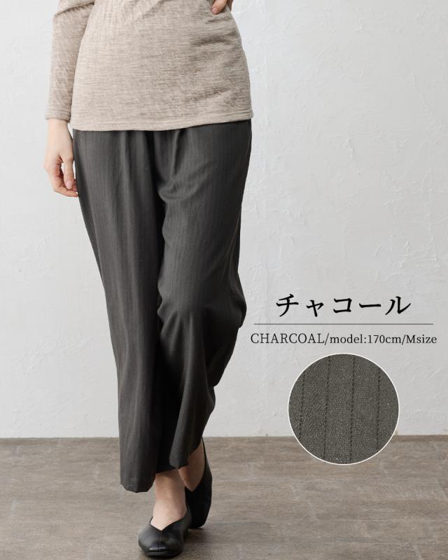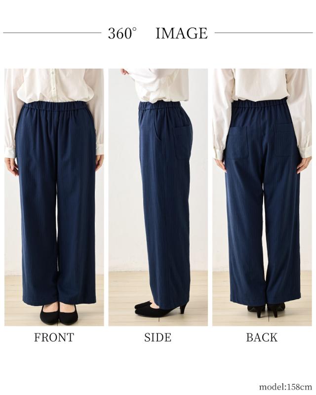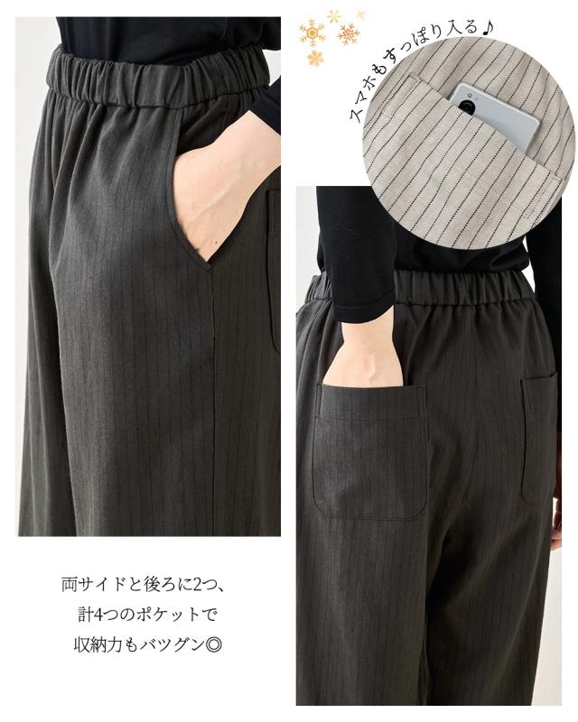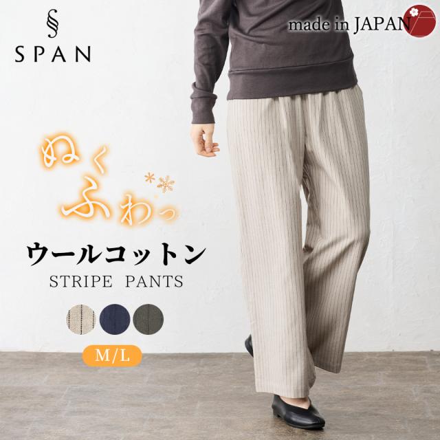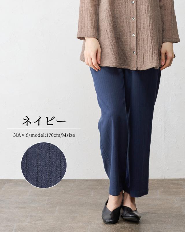 ウールコットン セミワイドパンツ ストレートパンツ フルレングス 日本製 パンツ レディース ボトムス ポケット付き キレイめ 細見え 脚長 ストライプ ウール コットン 綿 女性 春 夏 秋 冬 ファッション ウエストゴム 6130972