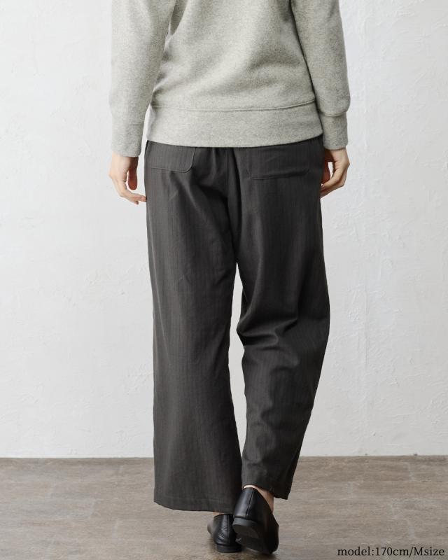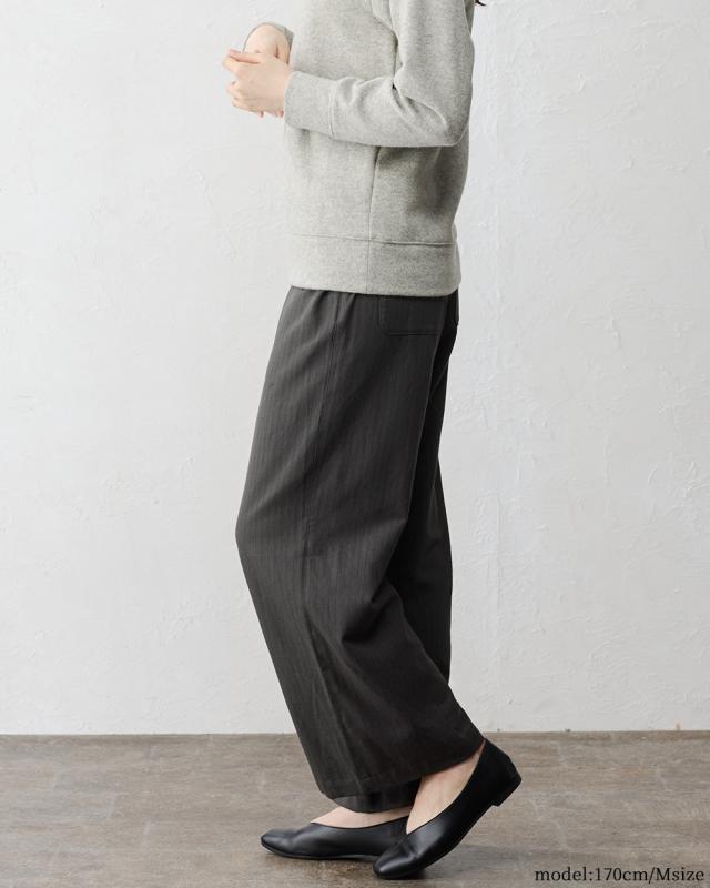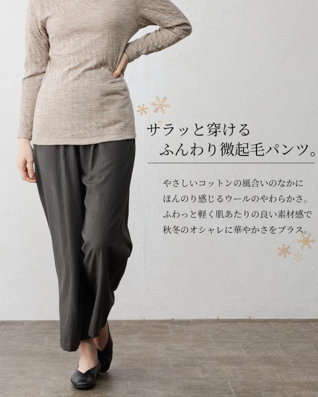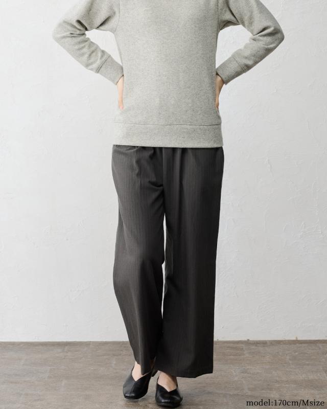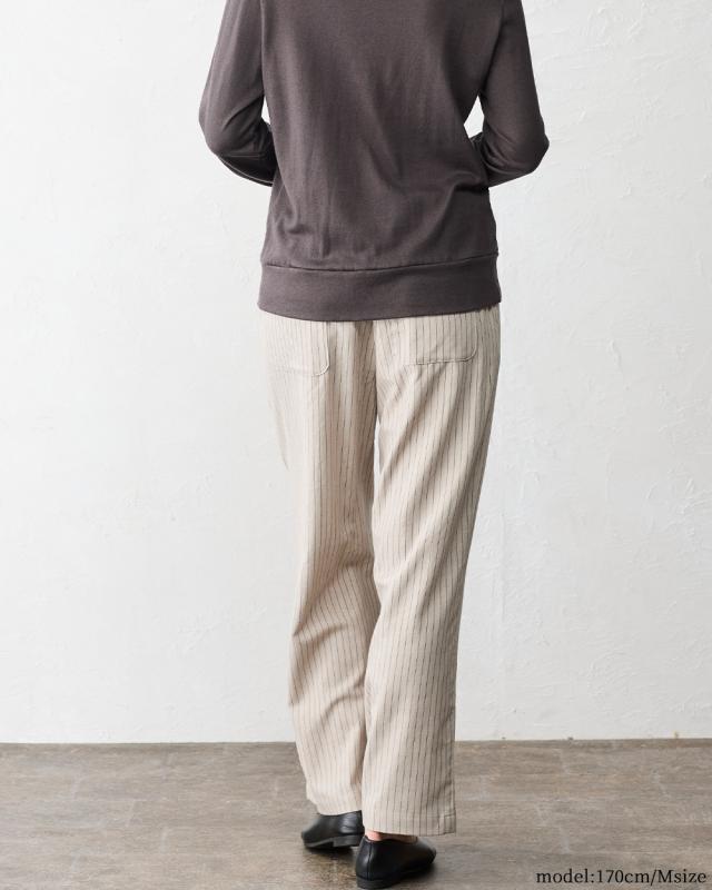 | 商品詳細/その他 | ふんわり、ウールの暖かみと綿のやさしさを感じられる微起毛素材。 セミワイドなストレートシルエットとストライプで脚長効果もバツグンの1枚 |