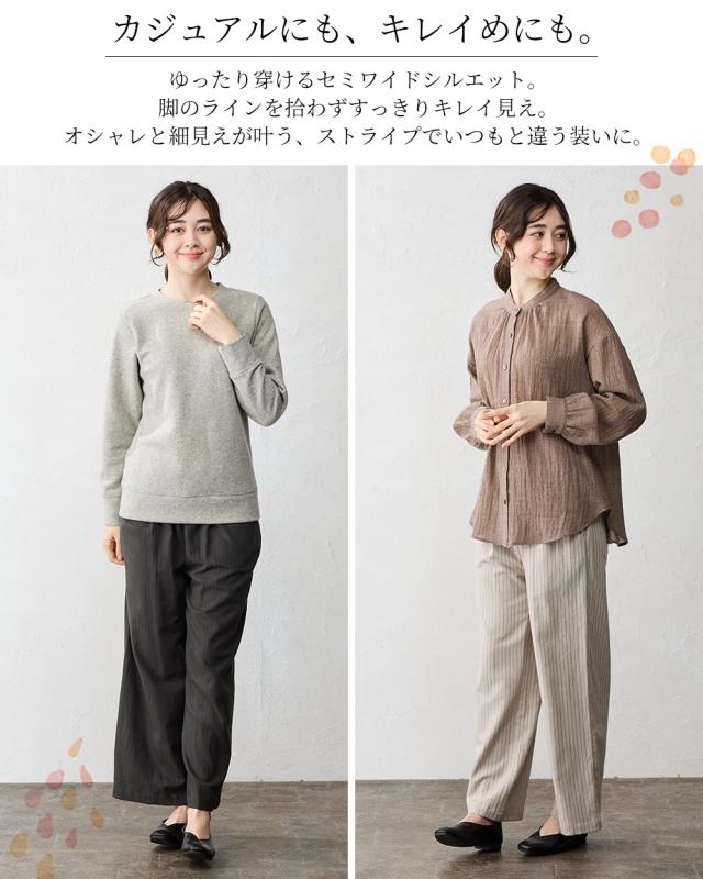 送料無料 ポイント消費 春 秋 冬 ロングシーズン レディース ボトムス パンツ ストライプ