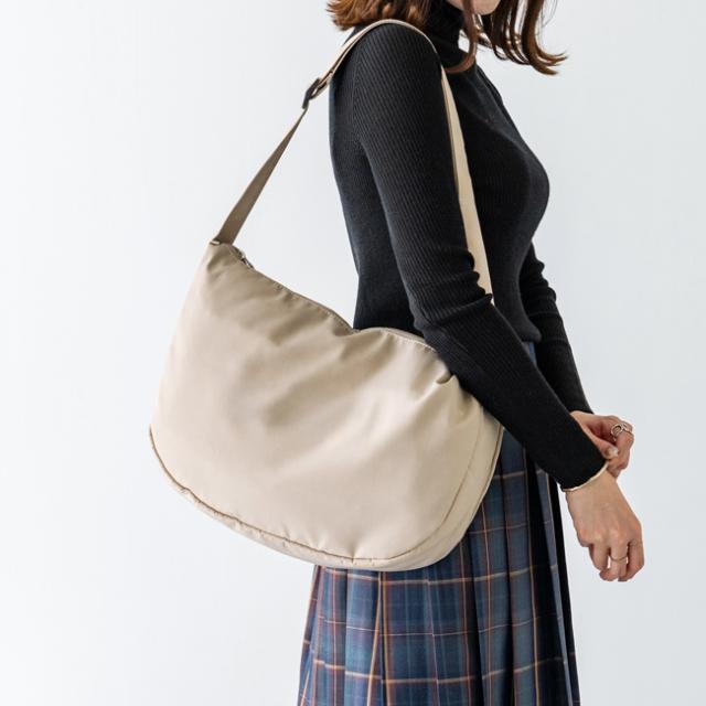 太めのショルダーベルトと半月型のシルエットが大人かわいい、コーデを選ばず使えるおしゃれなデザインです。