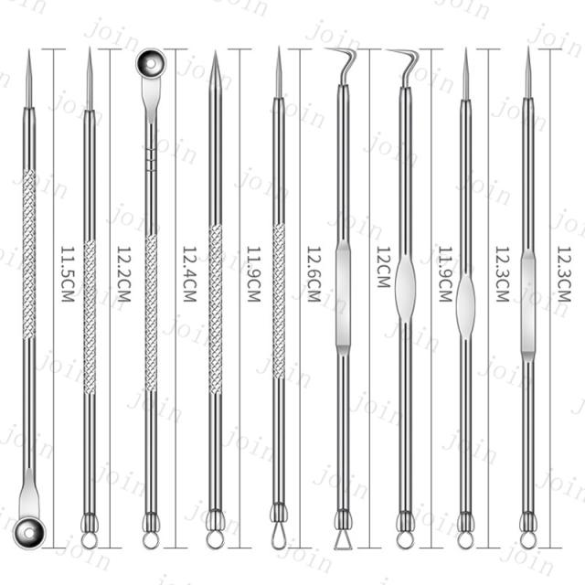 ●毛穴の角栓や、鼻周りの黒ずみ、黒ニキビ、白ニキビのケアに最適なプロ仕様のツール9本セットです。