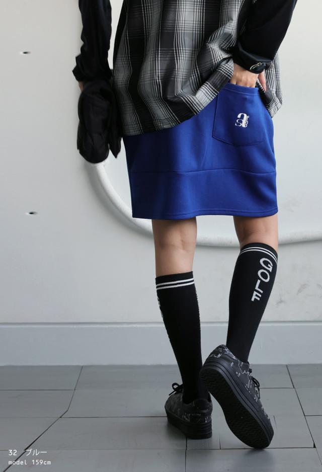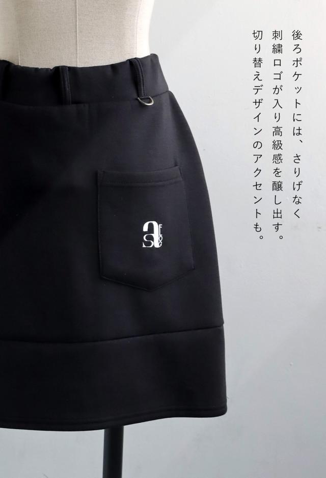 ast-00026 ひざ丈 ミニスカート ポケット付き Dカン ロゴ 刺繍 伸縮性 セットアップ ゆったり シンプル きれいめ スポーティ ショート丈 パンツ一体型 キュロットスカート スコート