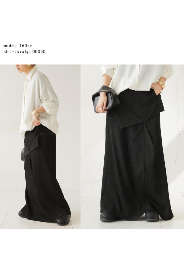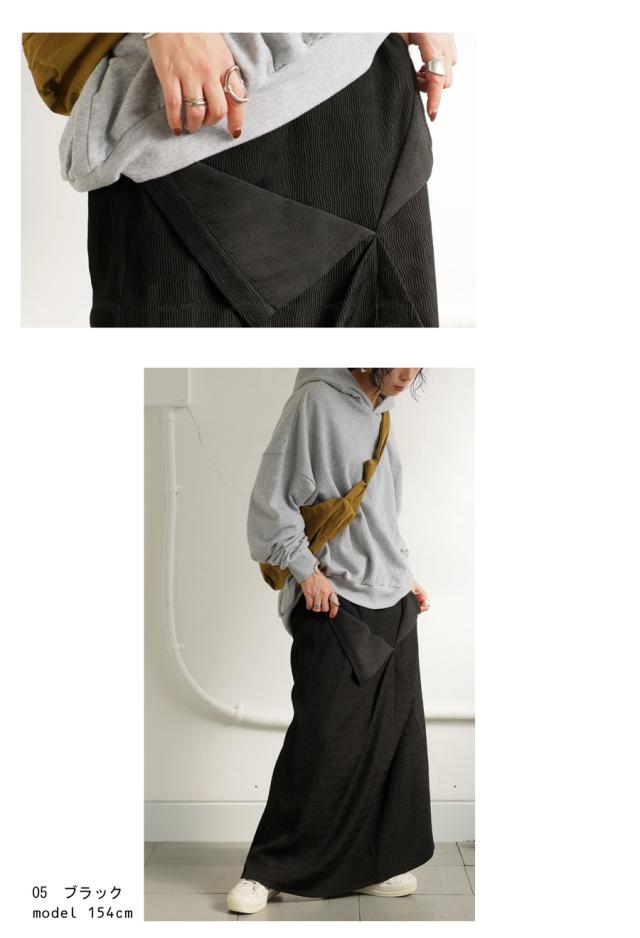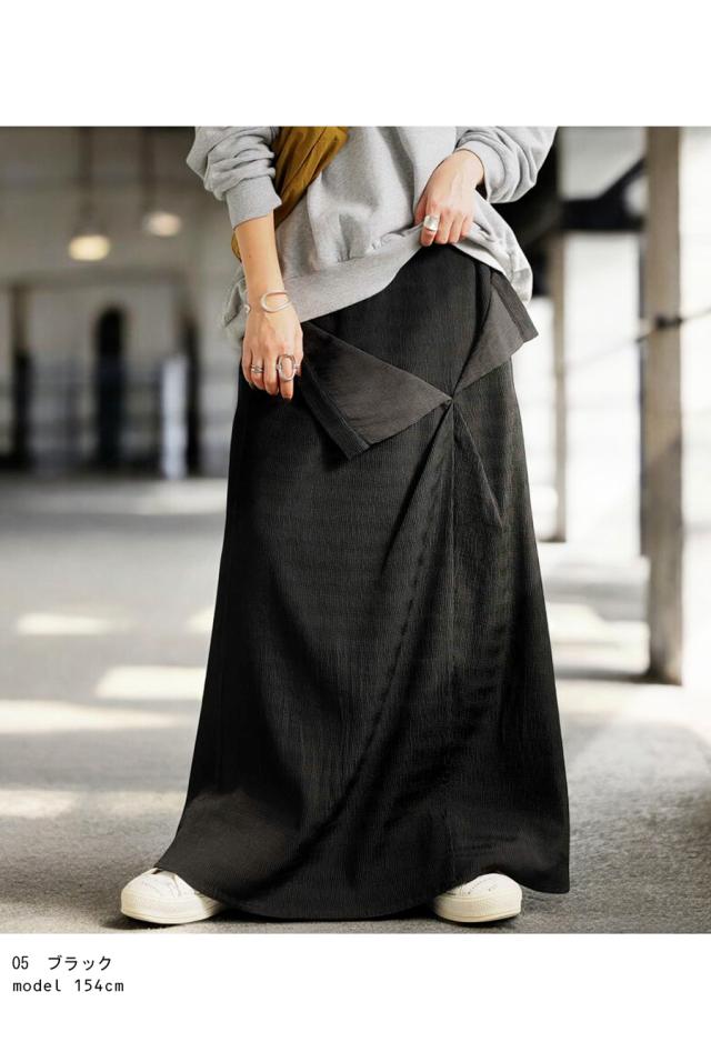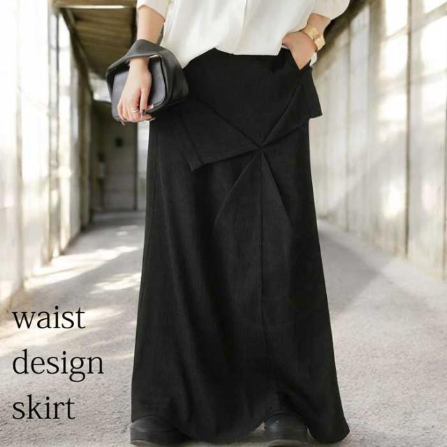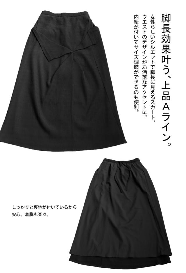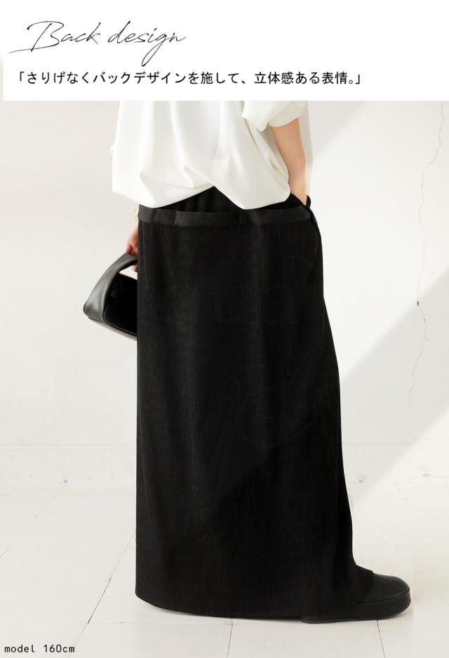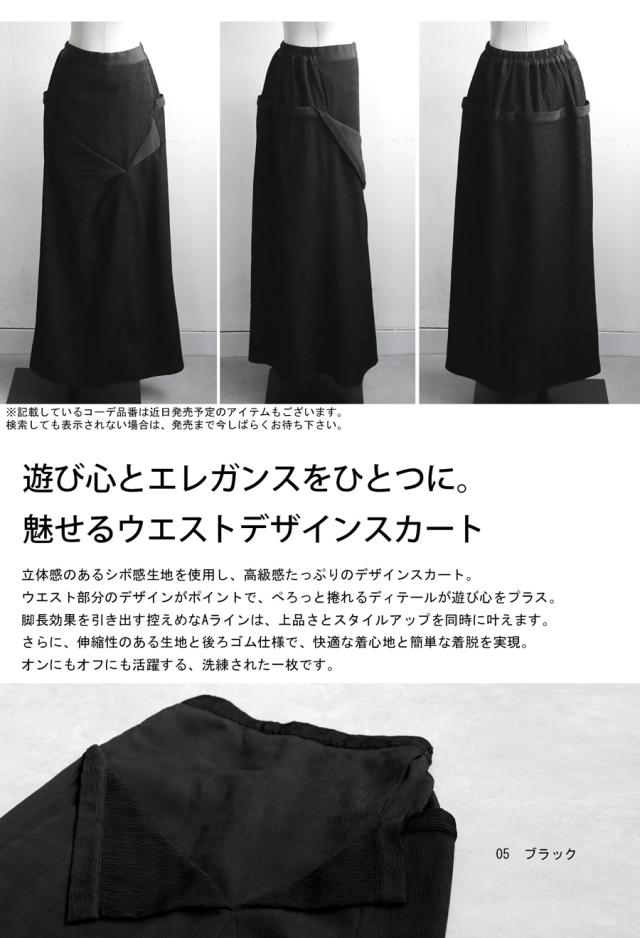pk-01273 脚長効果 シボ感 立体感 高級感 裏地付き 伸縮性 後ろゴム ポケット付き 着脱簡単 おしゃれ シンプル 体型カバー 着痩せ 上品 デザインスカート 無地 個性派 大人女子