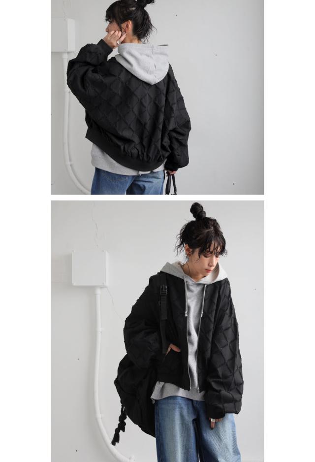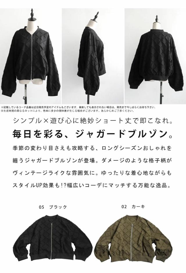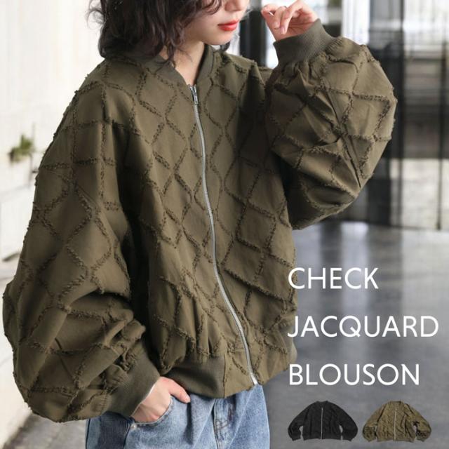 ジャガードブルゾン レディース 前開き ファスナー 送料無料・再入荷 メール便不可