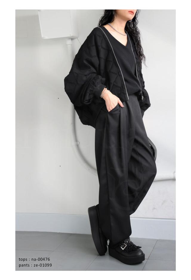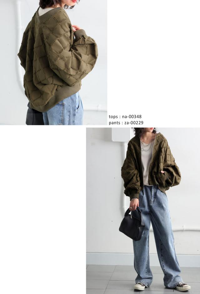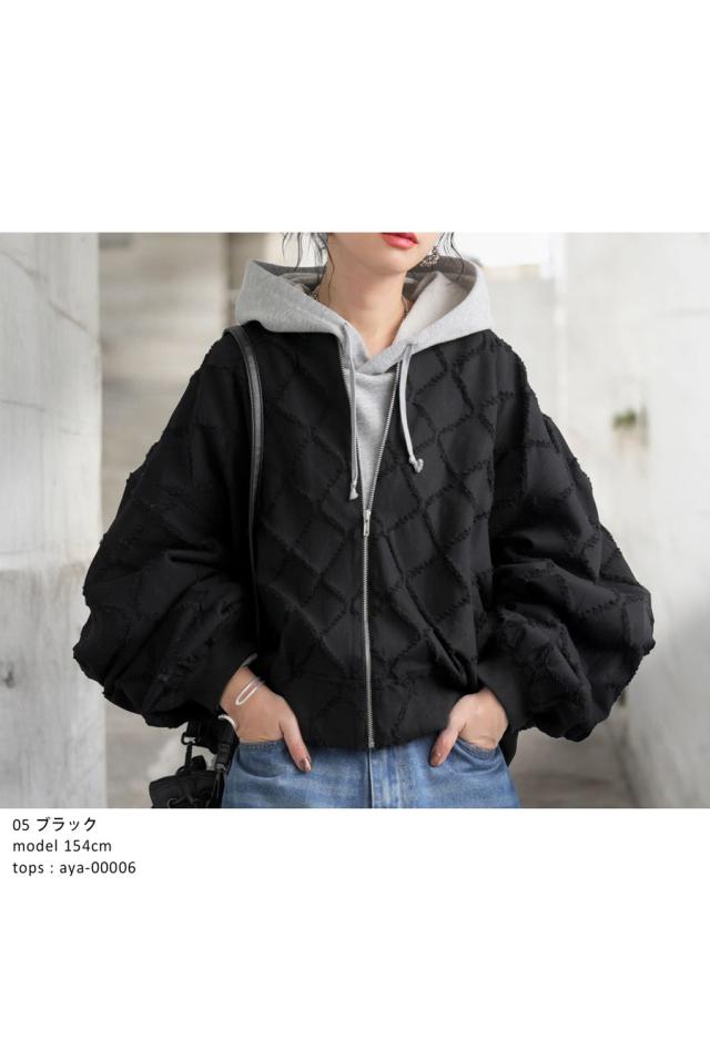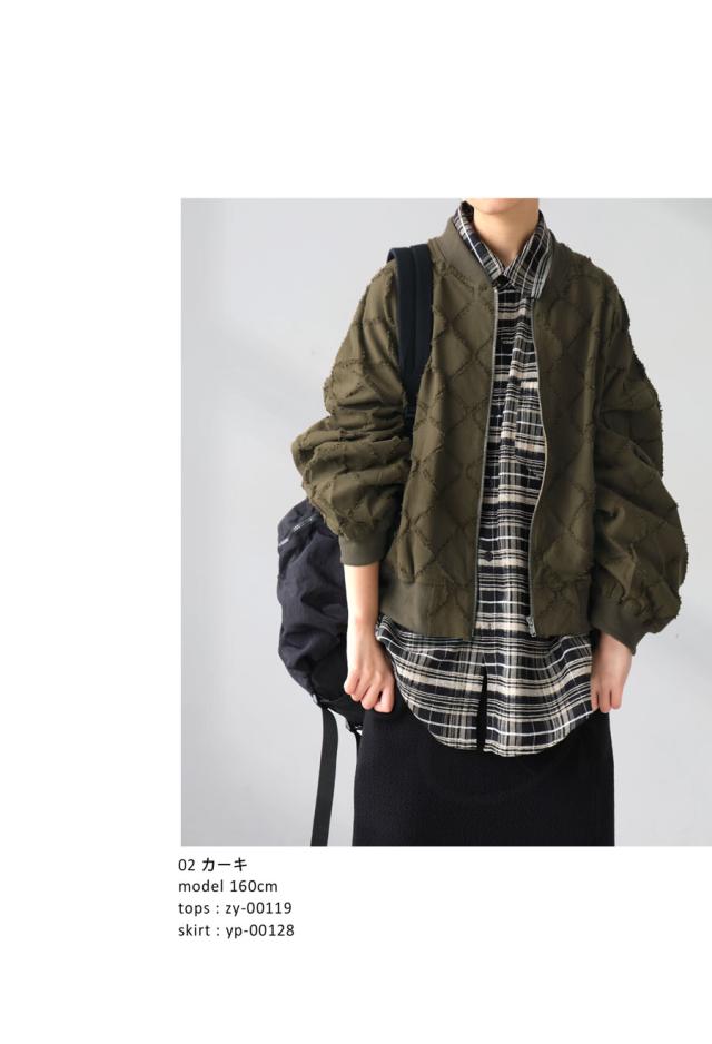 py-00791 ファスナー ジップ ダメージ風 格子柄 薄手 軽量 綿100 風合い良い 袖タック ボリューム袖 モードカジュアル 甘辛ミックス 着回し力 ショート丈 ジップアップ 羽織り