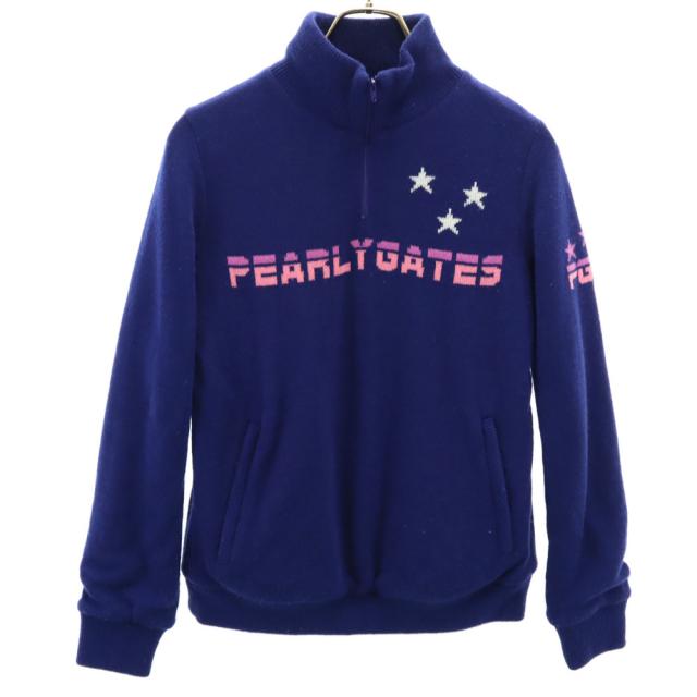 パーリーゲイツ 日本製 ウールブレンド バック刺繍 ゴルフ 長袖 ハーフジップ セーター 1 ネイビー PEARLY GATES ニット レディース